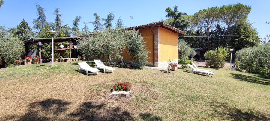Villetta indipendente realizzata nel 1970 per complessivi 320 mq per lo più al piano terra circondata da 5.000 mq di giardino recintato ed ulteriori 2 ettari tra frutteto, oliveto e spazio dedicato alla piscina di 10x20 mt.