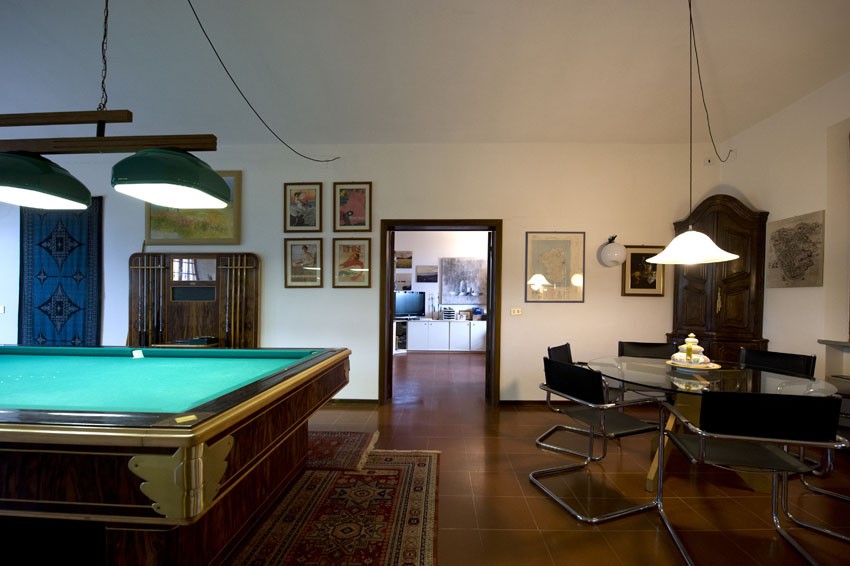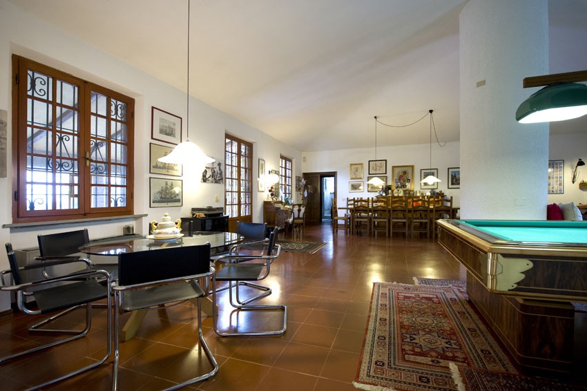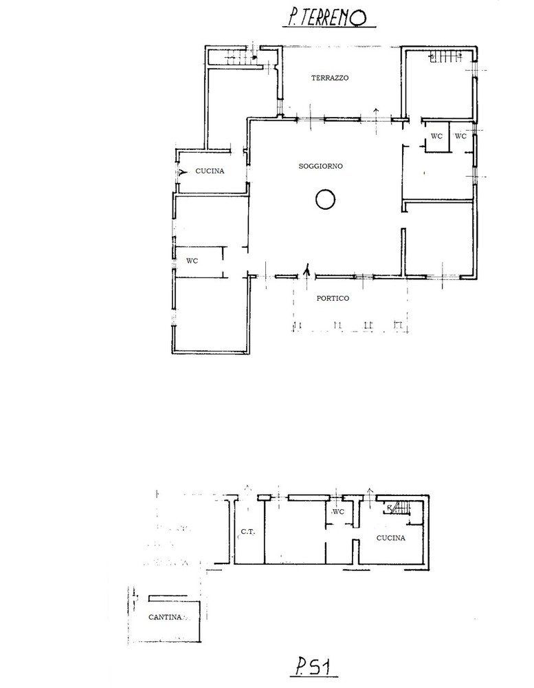 Si divide tra un grandissimo salone con camino, cucina, quattro camere, tre bagni ed al piano S1 (collegato da scala interna e con accesso anche diretto dall’esterno) un altra cucina, camera, bagno, un’ampia cantina e due garage.