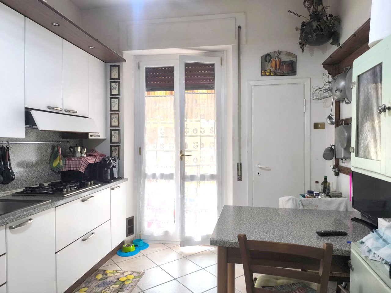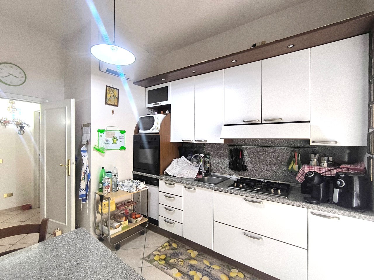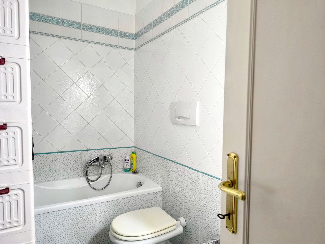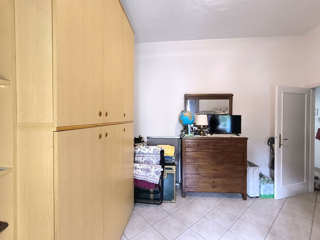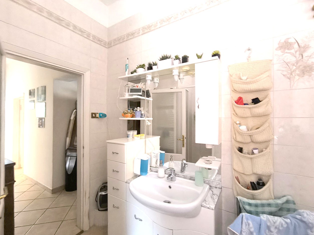 In piccolo condominio, in angolo e tranquillo e riservato, appartamento di circa 115 mq. in buone condizioni complessive. E’ composto da ingresso, disimpegno, cucina abitabile con dispensa e terrazza con ripostiglio, ampio soggiorno con altro balcone, tre camere matrimoniali e due bagni. Completa la proprietà una cantina di circa 5 mq. al piano terreno. In disponibilità spazio in garage condominiale e bel giardino anch’esso condominiale.