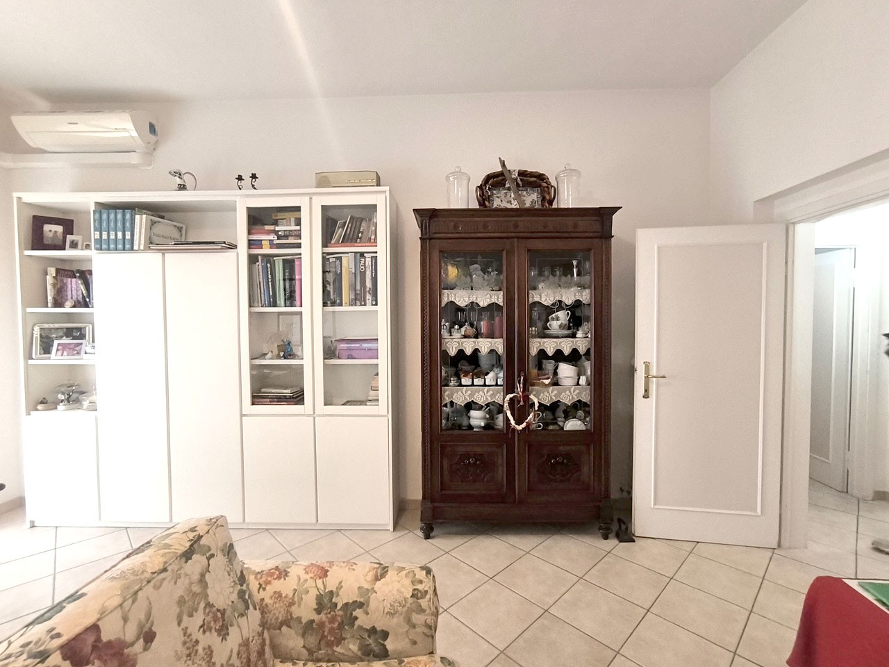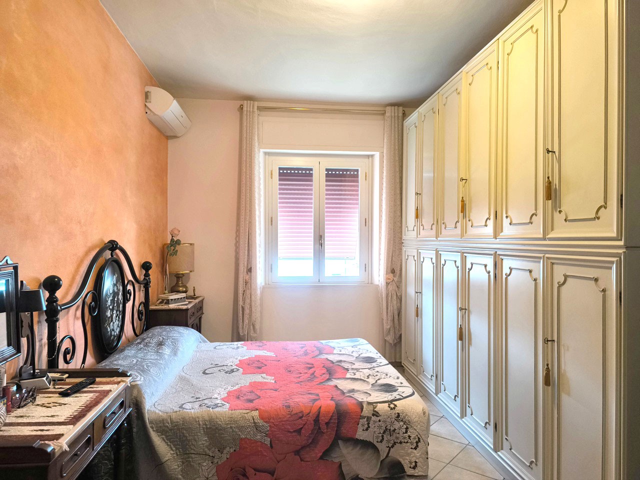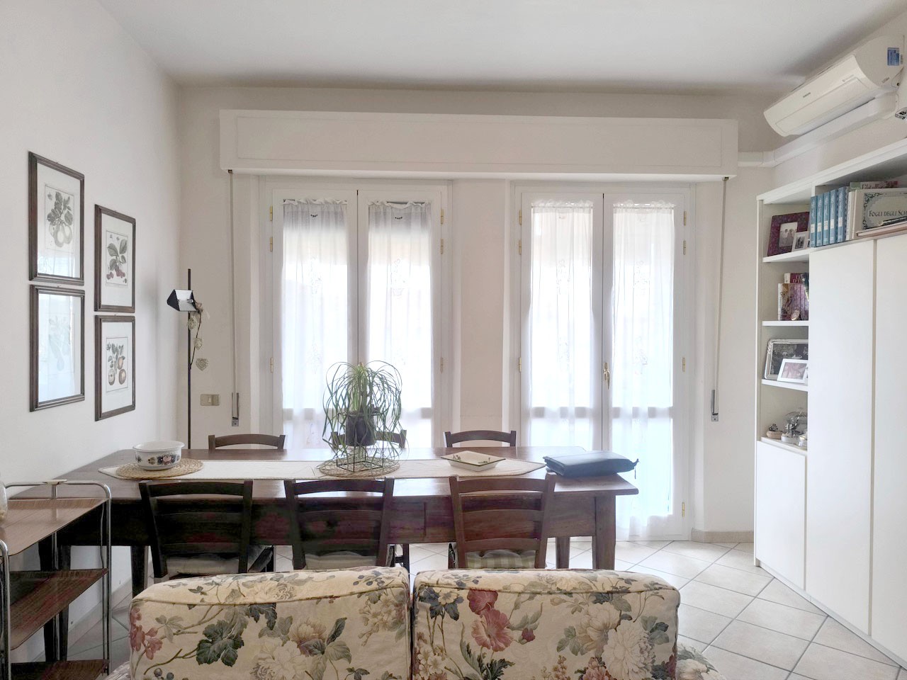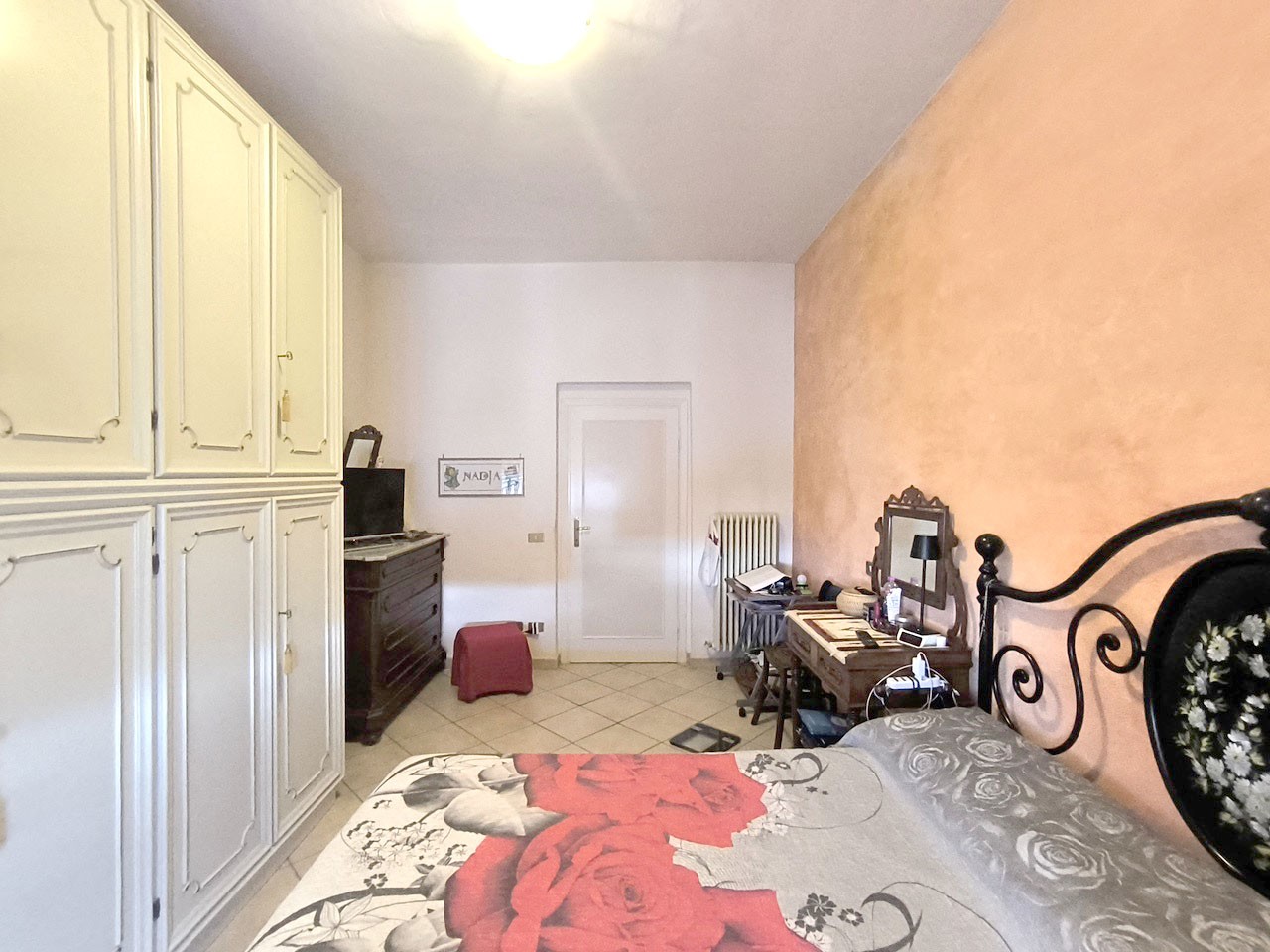 In piccolo condominio, in angolo e tranquillo e riservato, appartamento di circa 115 mq. in buone condizioni complessive. E’ composto da ingresso, disimpegno, cucina abitabile con dispensa e terrazza con ripostiglio, ampio soggiorno con altro balcone, tre camere matrimoniali e due bagni. Completa la proprietà una cantina di circa 5 mq. al piano terreno. In disponibilità spazio in garage condominiale e bel giardino anch’esso condominiale.