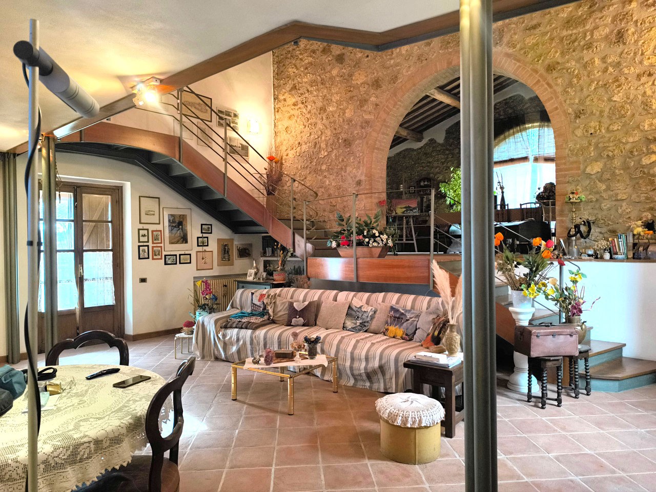 Immerso nelle campagne senesi ma assai vicino alla città casale completamente ristrutturato alcuni anni fa ma in condizioni perfette. Si sviluppa su due livelli per complessivi 216 mq. ed e’ composto da ingresso, ampio soggiorno con camino, sala da pranzo, cucina abitabile, ripostiglio e bagno con doccia. A mezzo di una scala in legno si raggiunge il primo piano composto da due camere ed un grande bagno con una vasca idromassaggio. Completano la proprietà un grande vano con finestra ad uso cantina ed un locale tecnico. Intorno al casale giardino terreno per circa 8000 mq. completamente recintato con ingresso da cancello elettrico. Completa la proprietà un garage interrato di circa 60 mq.