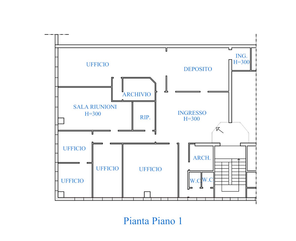 In zona di grande passaggio veicolare con vetrine fronte strada, proponiamo in affitto ufficio posto al piano primo di 260 mq attualmente diviso tra ingresso/sala di attesa, stanza deposito e ripostiglio, doppi servizi, tre stanze utilizzato come archivio/ripostiglio, cinque stanze uso ufficio ed ampia sala riunioni.